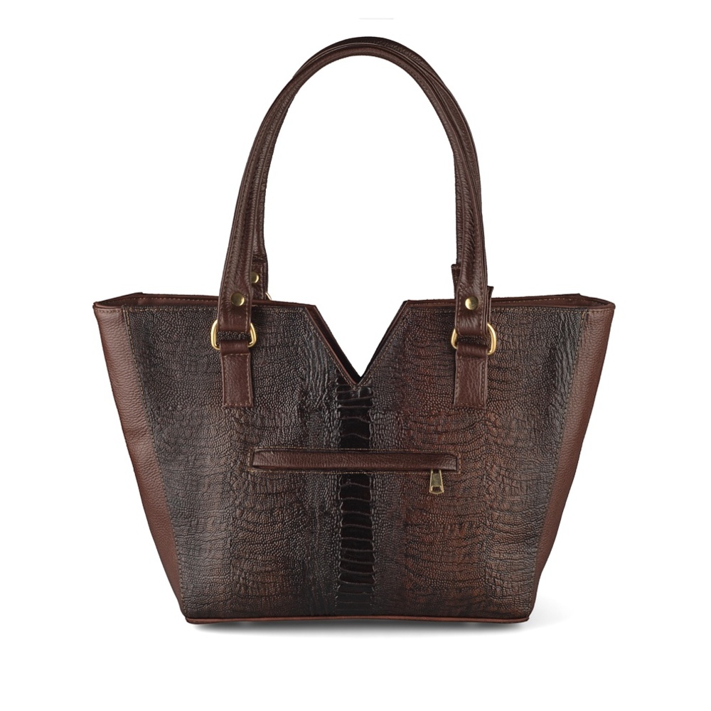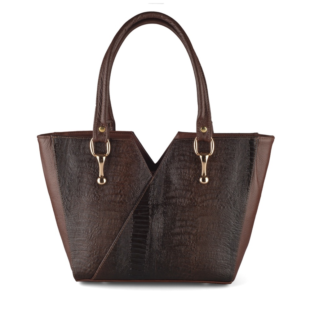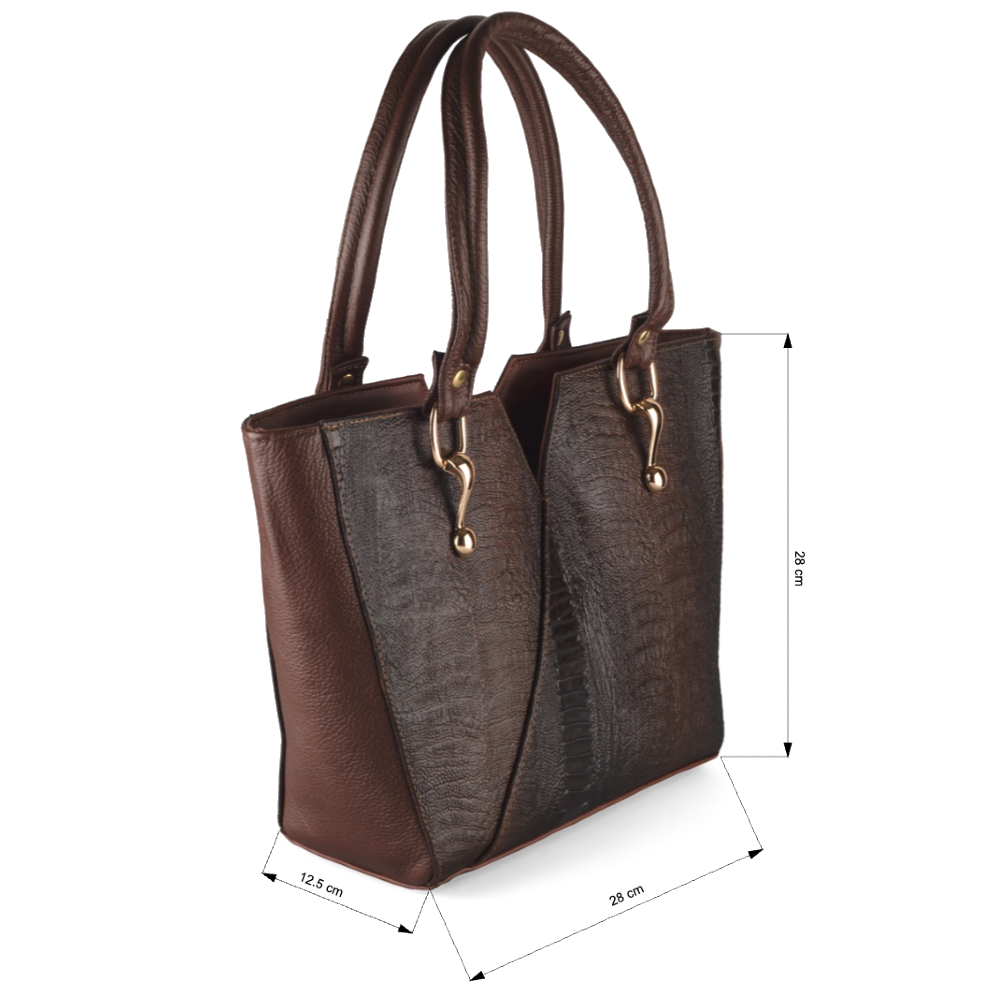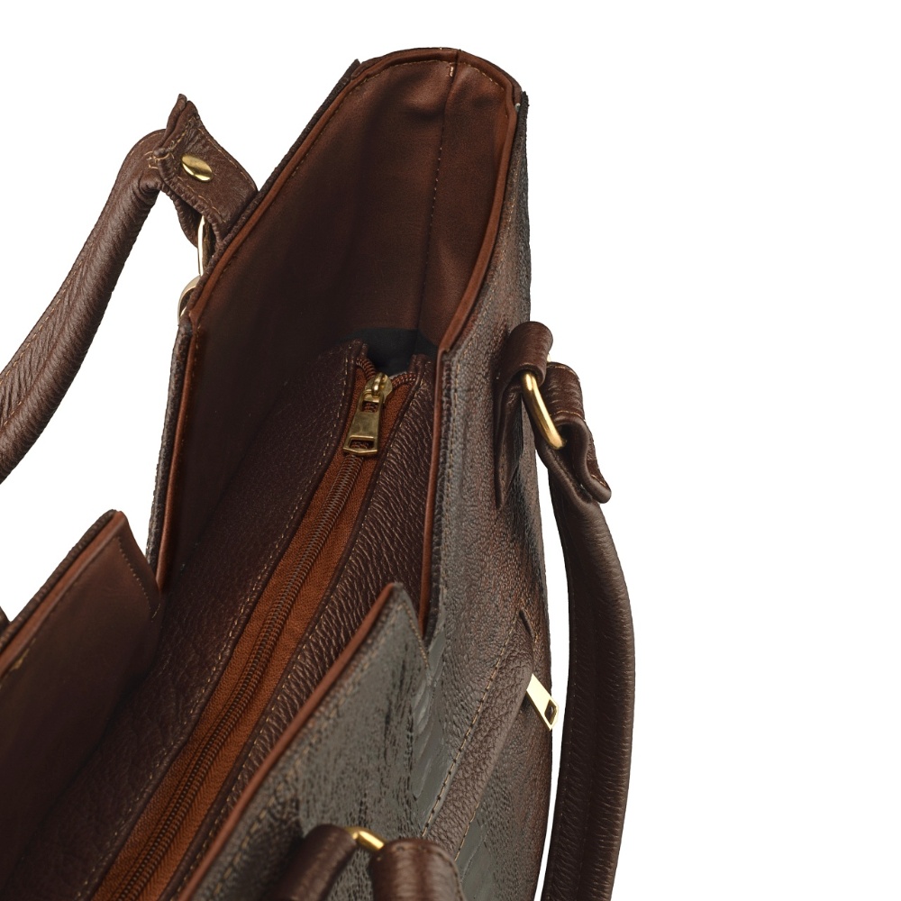 Bolsa De Mujer En Piel De Vaca Grabado Avestruz Café