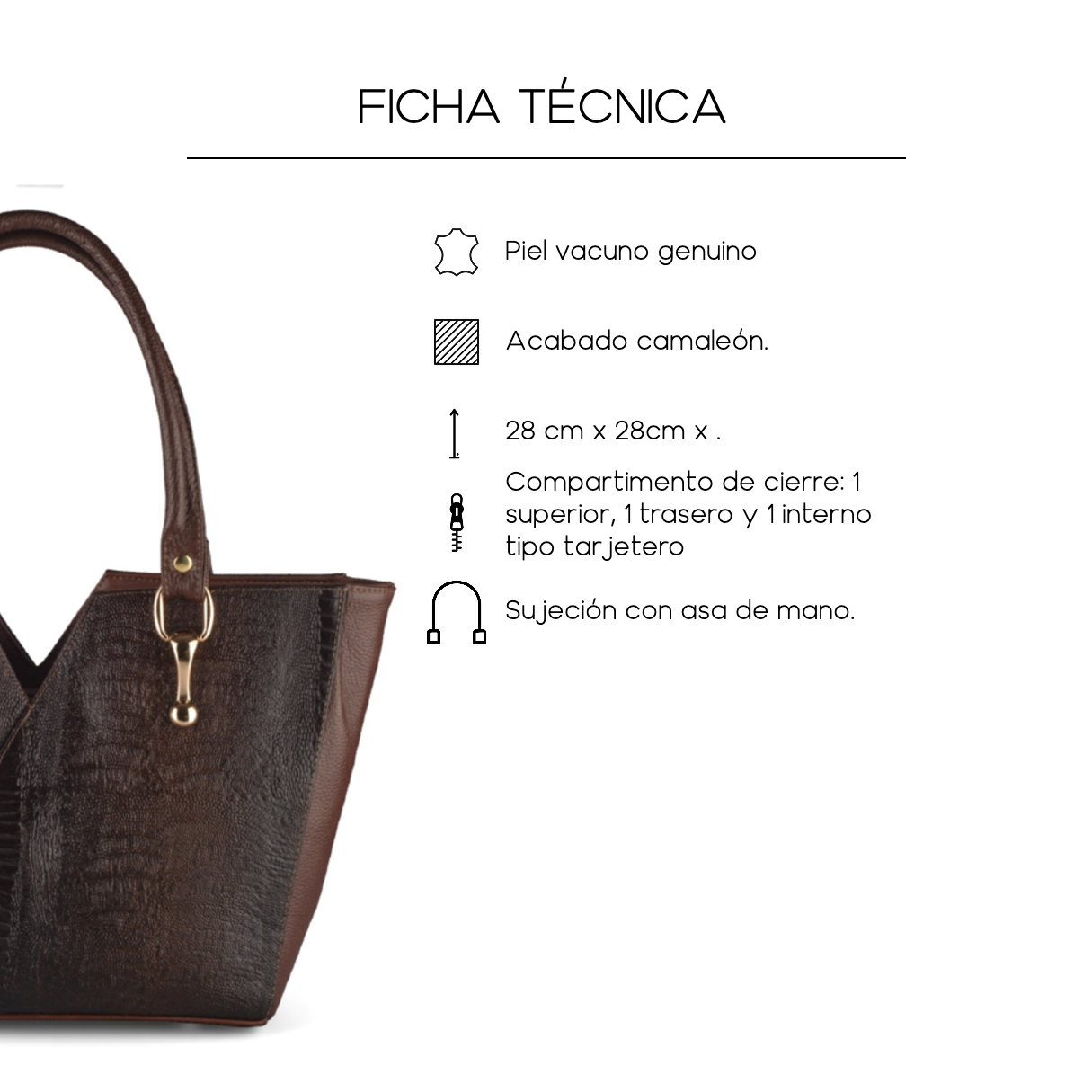 Bolsa elaborada en piel vacuno genuino con acabado tipo avestruz, ideal para complementar atuendos casuales o elegantes. Su estructura firme y detalles metálicos dorados reflejan el trabajo artesanal característico de Dasalo. Cuenta con tres cierres: principal en la parte superior, uno trasero y un cierre interior auxiliar. Las asas dobles permiten usarla de forma práctica y con estilo.