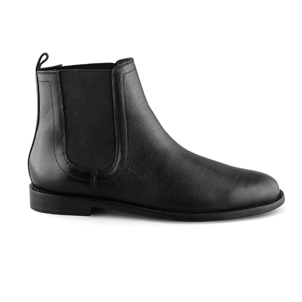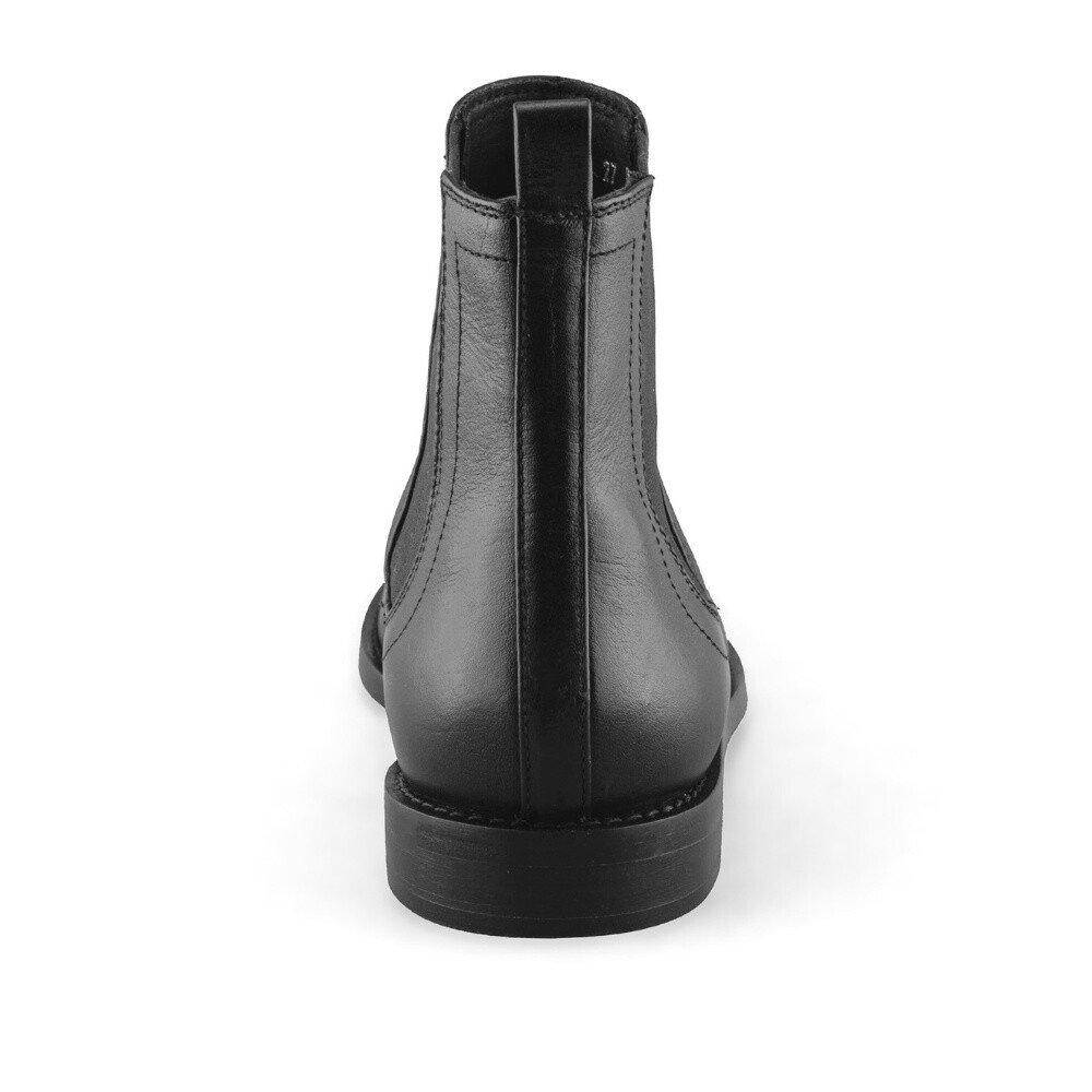 Botín Chelsea de piel vacuno negro para hombre, elaborado artesanalmente con piel seleccionada por su grano natural y textura uniforme. El acabado resalta el carácter auténtico de la piel, permitiendo que cada par conserve ligeras variaciones propias de un material genuino.