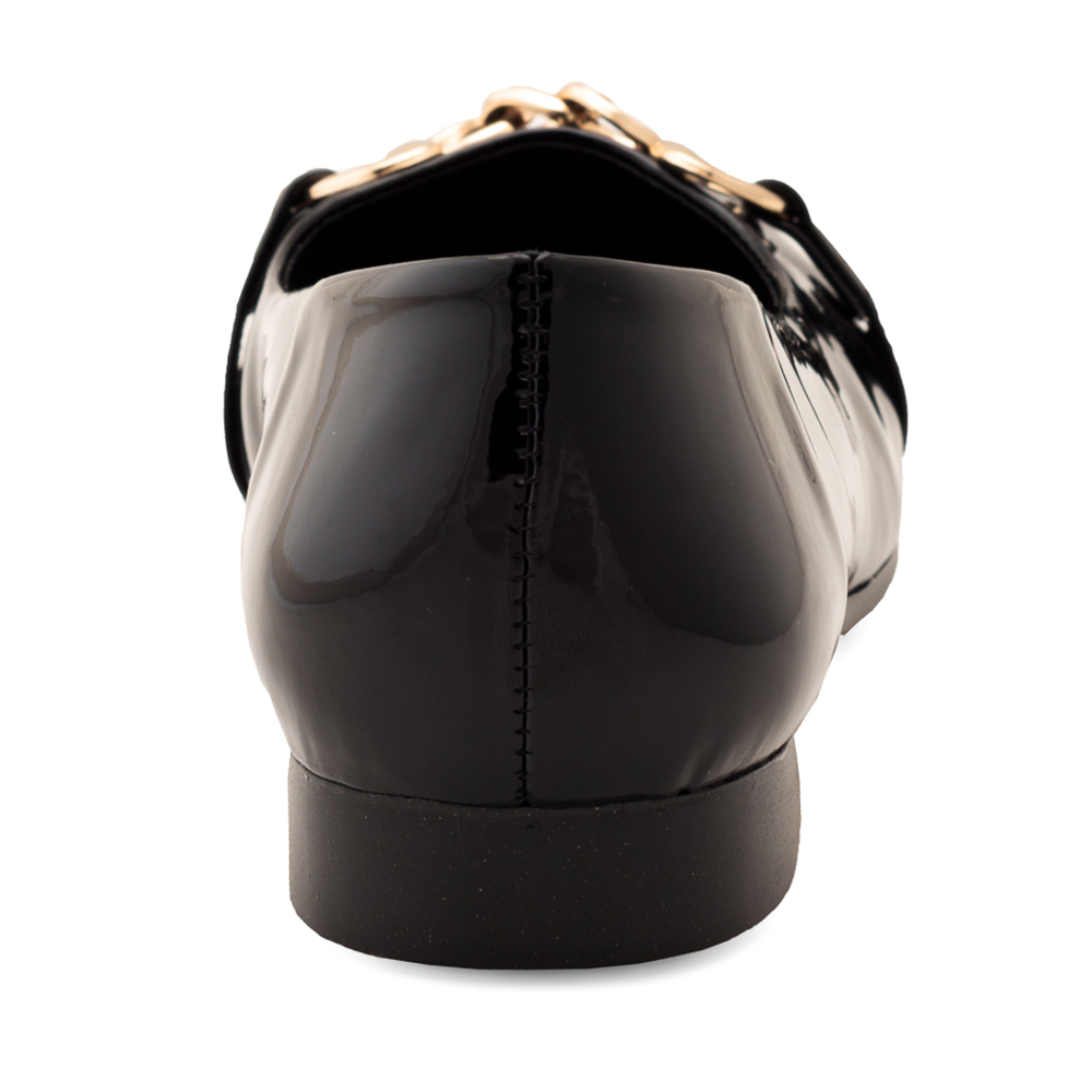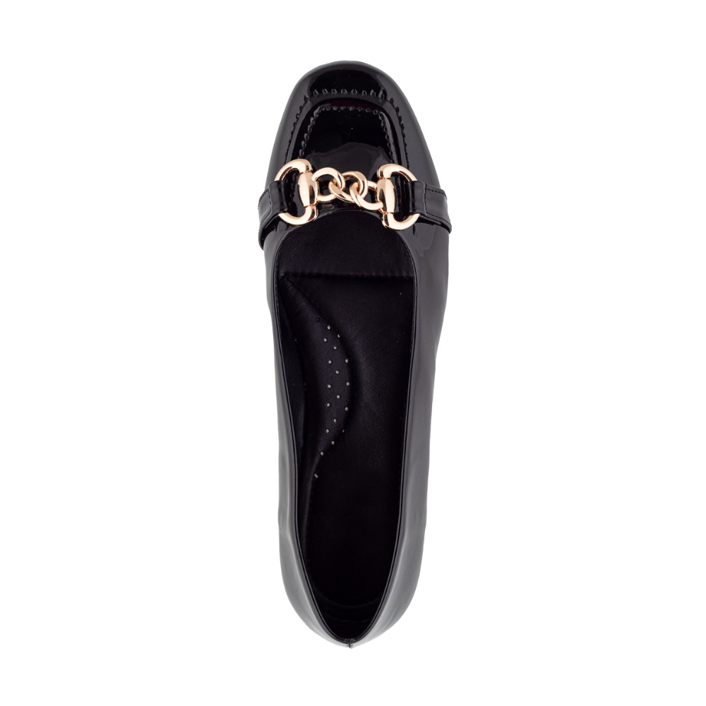 Mocasín De Charol Negro Con Cadena Para Mujer