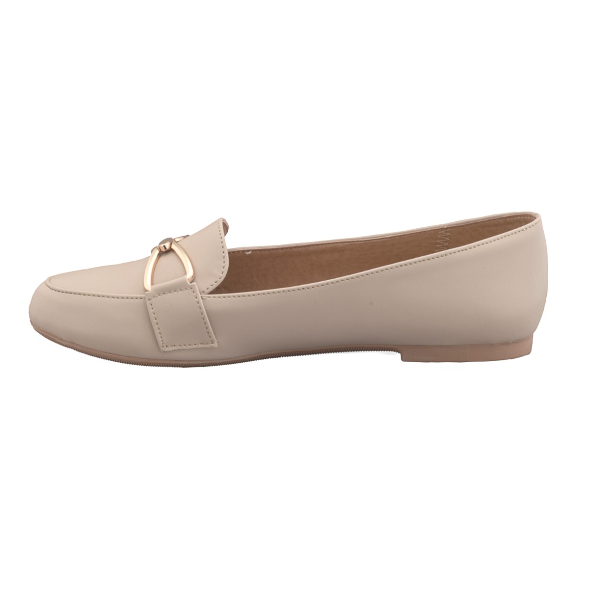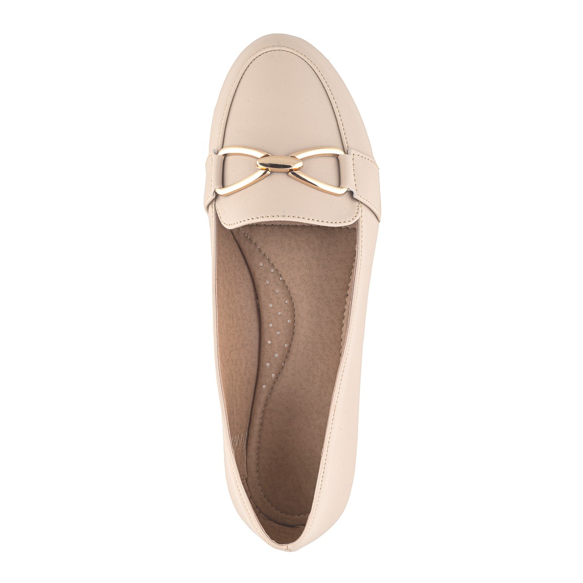 Mocasín nude para mujer con una silueta clásica que combina elegancia y comodidad. El acabado liso, el detalle de herradura y su tono beige late lo convierten en un diseño versátil que funciona tanto para el día a día como para looks más formales. Su calce slip on ofrece practicidad total y una sensación ligera que acompaña el movimiento natural del pie. Una pieza indispensable para un guardarropa moderno y femenino.