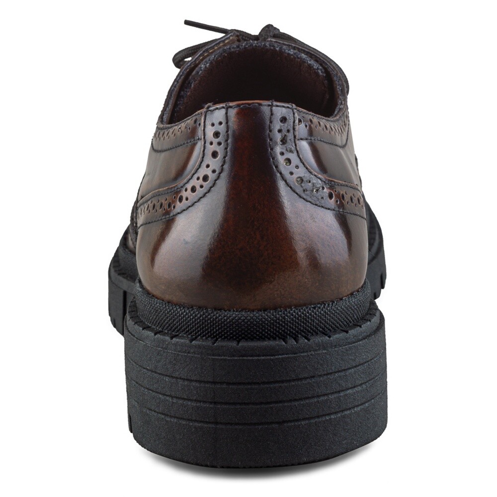 Este Zapato Bostoniano De Piel Café Para Hombre representa la evolución del calzado clásico hacia una propuesta contemporánea con mayor presencia y carácter. Su diseño mantiene las líneas tradicionales del bostoniano, integrando detalles perforados que aportan sofisticación sin perder fuerza visual.